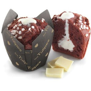 Muffin ispirato alla classica torta Red Velvet, con cuore di cioccolato bianco.